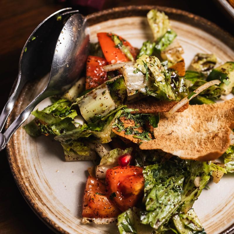 Syrian garden salad, sumac, pita, olive oil, pomegranate molasses