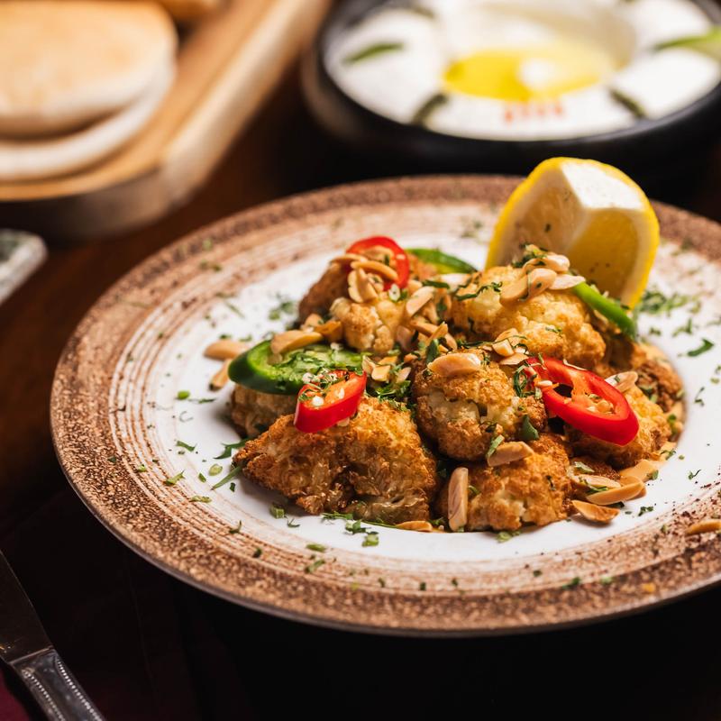Baked in a bed of tahini, garlic, onion, tomatoes, cilantro and Syrian spices